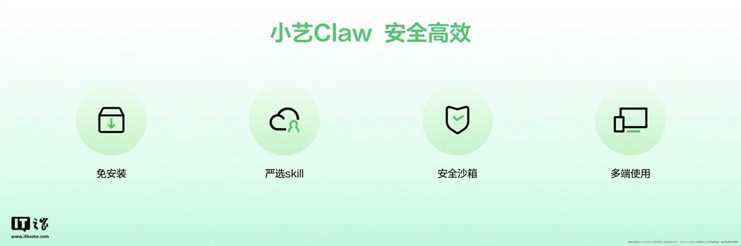 目前,支持小艺 Claw 的小艺 App 已开启尝鲜升级。据介绍,小艺 Claw 支持开箱即用,可一键唤醒;支持自我学习、深度记忆,可不断进化;支持多端协同,可与鸿蒙多设备互动,如便捷管理手机的日程、备忘录等;支持端云协同,拥有鸿蒙系统级安全加固。